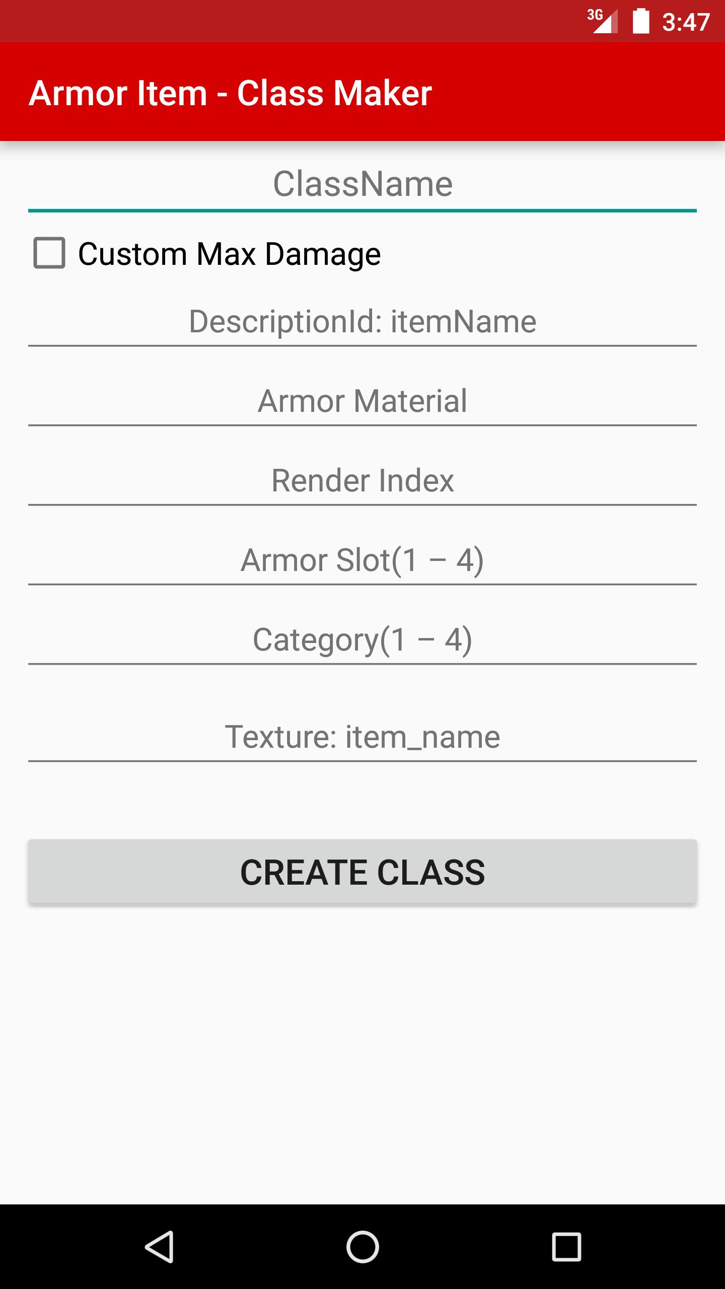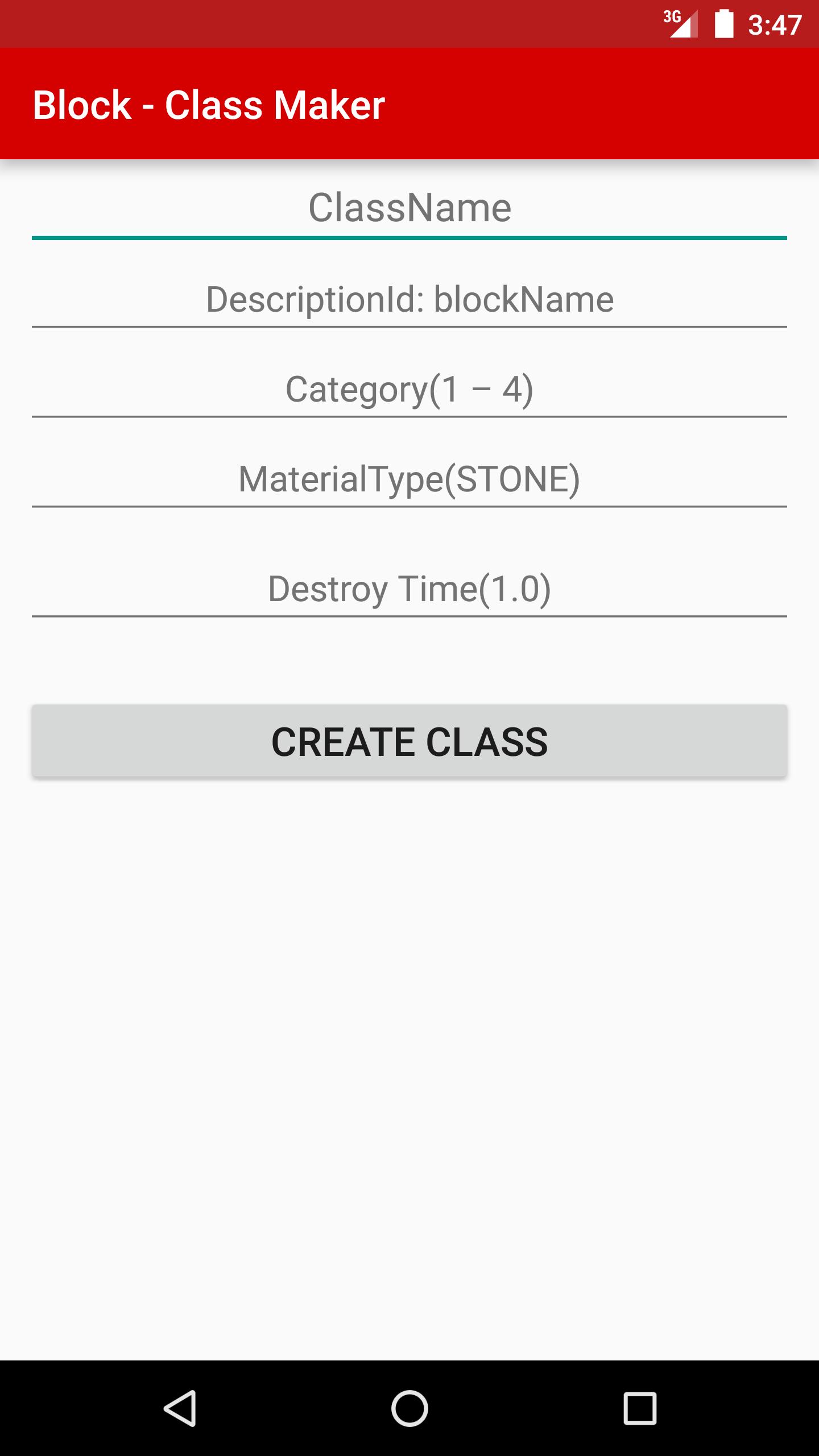 You just need to complete the fields and press a button. The classes will be automatically generated for you in /sdcard/ClassMaker.