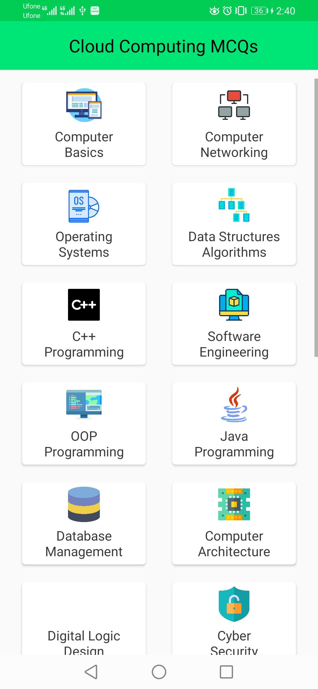 "Cloud Computing and Computer Science MCQs" - An Android Application containing more than 95,000 subject wise and topic wise multiple choice questions. This bank of Multiple Choice Questions (MCQs) focuses on all core areas of Cloud Computing, Computer Science, Software/Computer Engineering and Information Technology.
