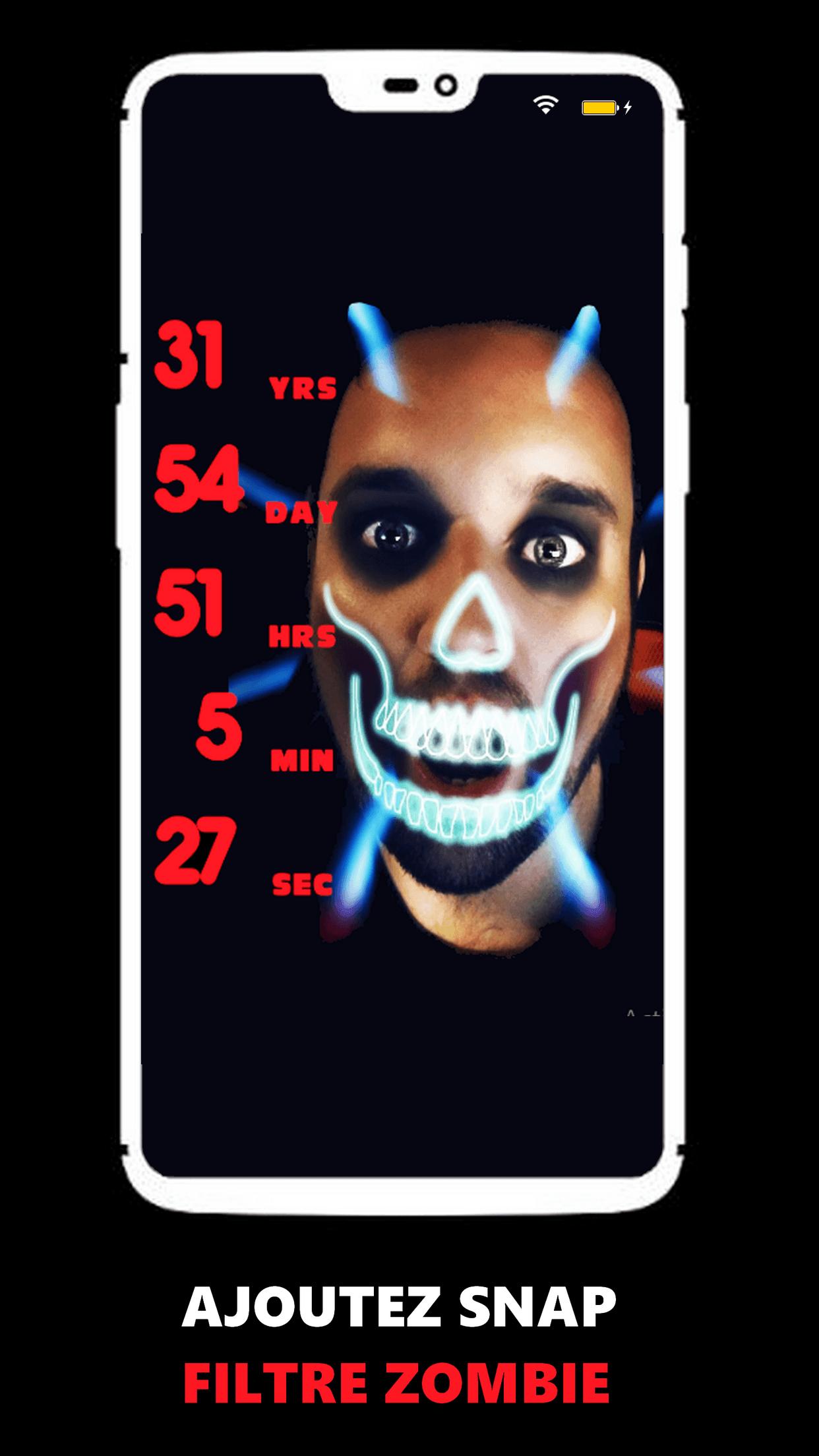 🤳Prenez un snap avec votre countdown & ajoutez le filtre zombie.