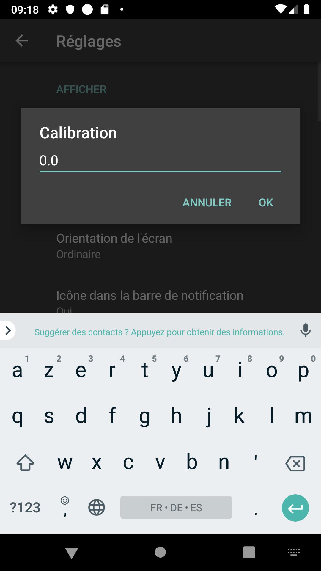 Allez dans la salle de bain, fermez la porte silencieusement, puis dans la configuration et le calibrage, modifiez les valeurs jusqu’à ce que les valeurs entre 15 et 20 dB s'affichent.