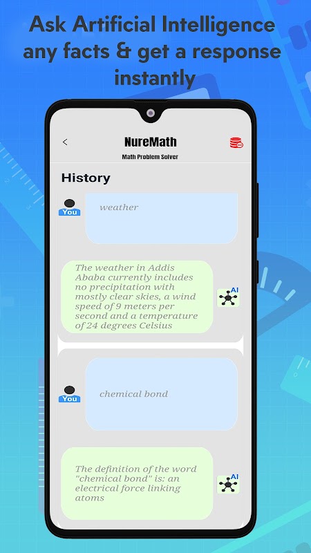 ► There is one more thing! Besides helping you with solving math equations, this free math solver app has an artificial intelligence feature that lets users search for facts, currency, city, weather, and other topics, and the intelligent assistant replies with information regarding the request.