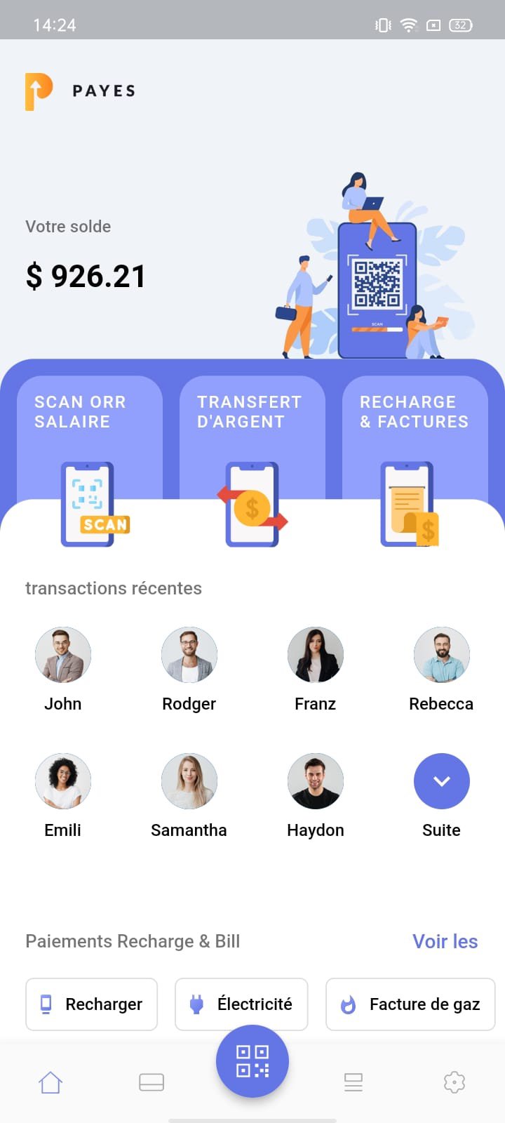 Les utilisateurs peuvent recharger et payer leurs factures via Payes. Tous les détails de la transaction sont disponibles dans cette application avancée.