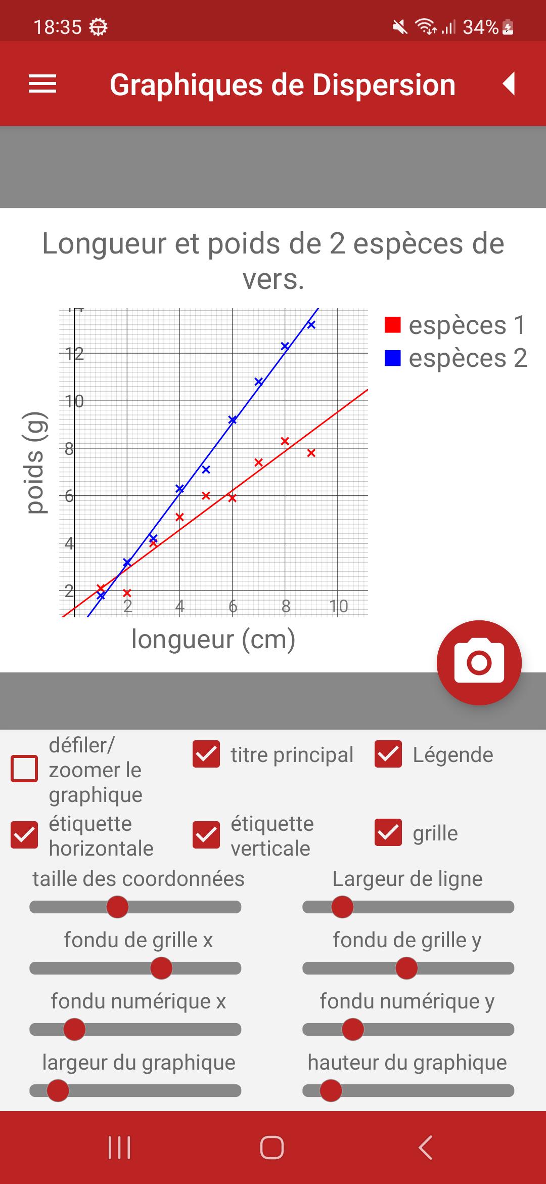 • Enregistrez des graphiques de dispersion dans la mémoire du téléphone pour les utiliser dans votre propre travail.