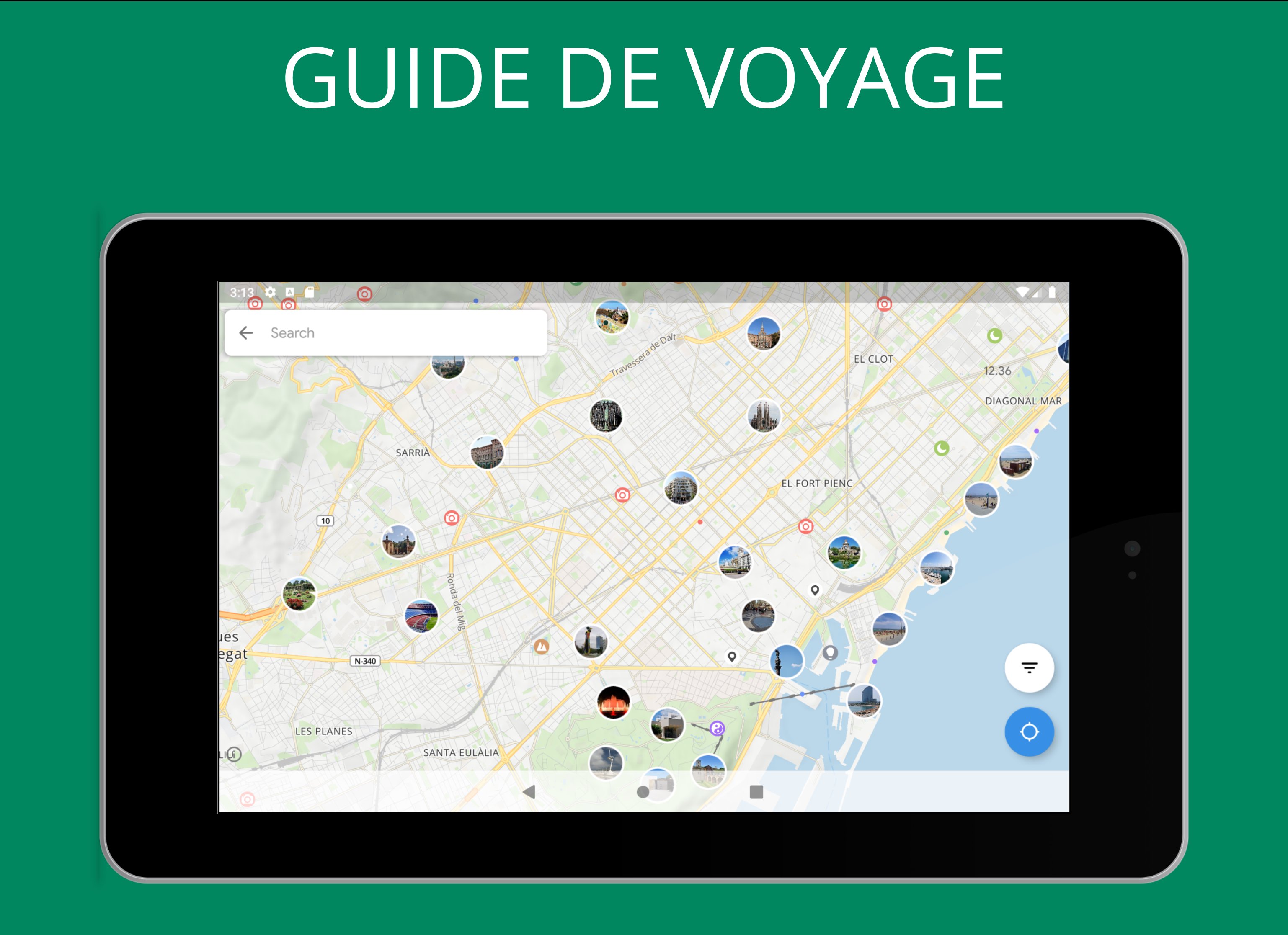 Soyez votre propre guide touristique. Des collections telles que 'Meilleures Plages' ou 'Architecture Moderne' facilitent la découverte de lieux intéressants. Des guides de voyage sont disponibles pour des milliers de villes, y compris Londres, Paris, New York, Rome, Barcelone, San Francisco ou Las Vegas.