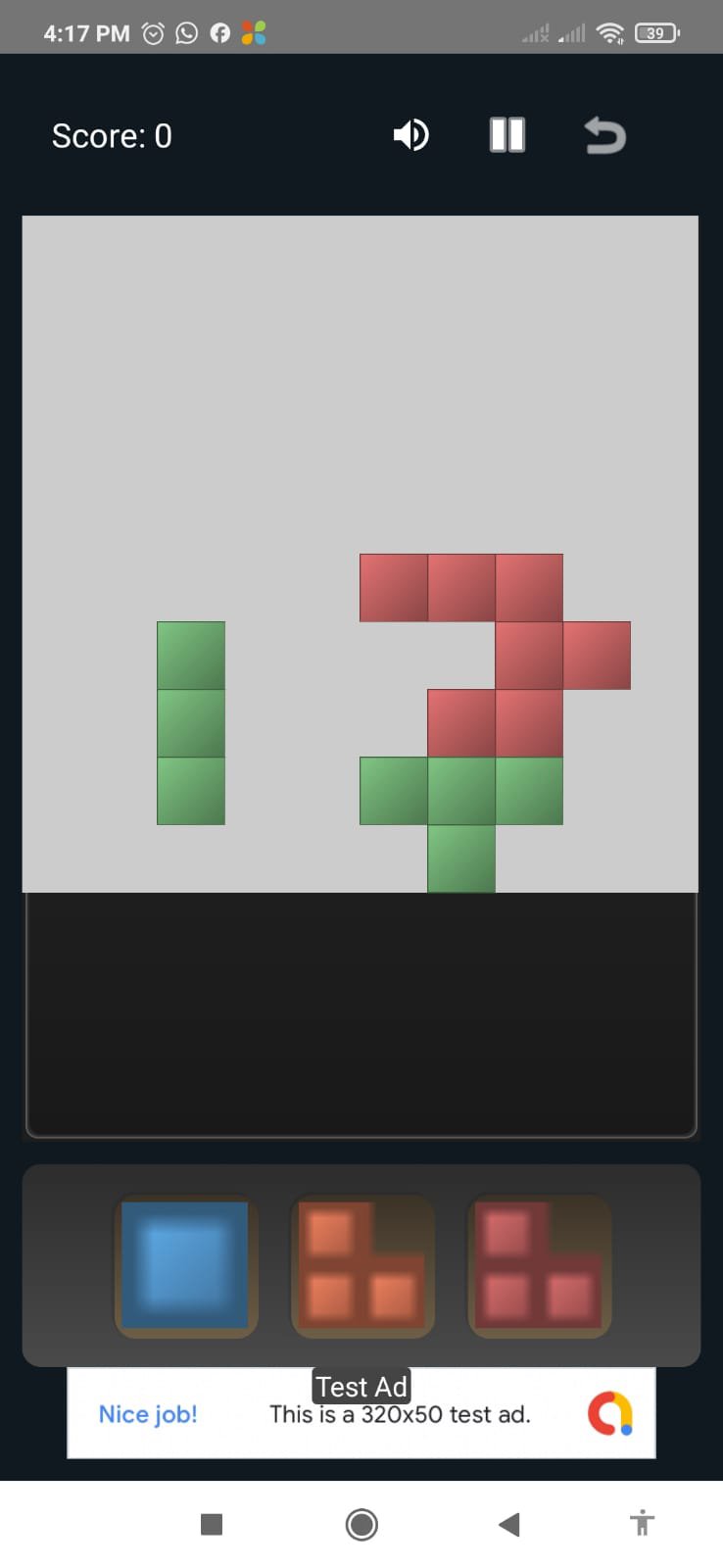 touch and place colorful gem-style blocks onto the 10x10 grid.