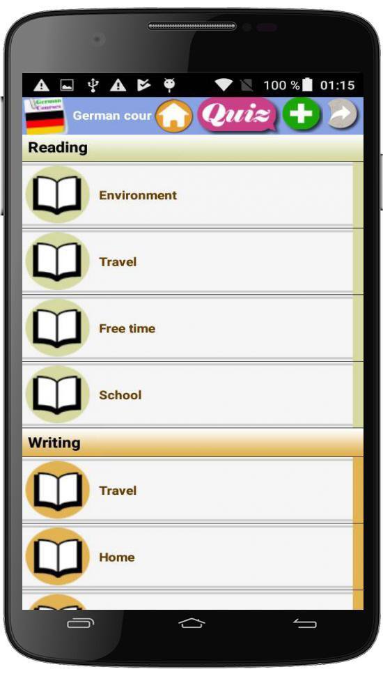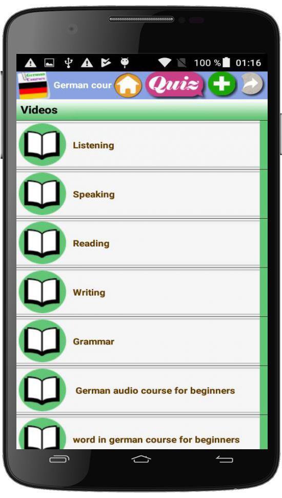 This free application is a dynamic library powered by the best English educational websites specialized in German course.