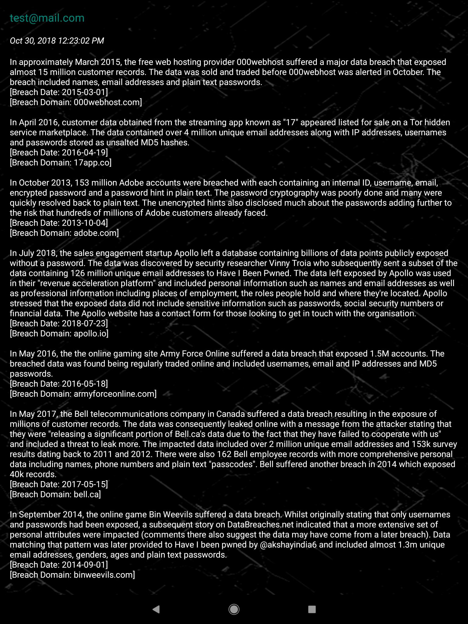 Hack Defenser scans your e-mail address in Deep Web databases and gives you information. In this way, you can secure your social media accounts and your personal e-mail account by taking notice of your security in other services you use.