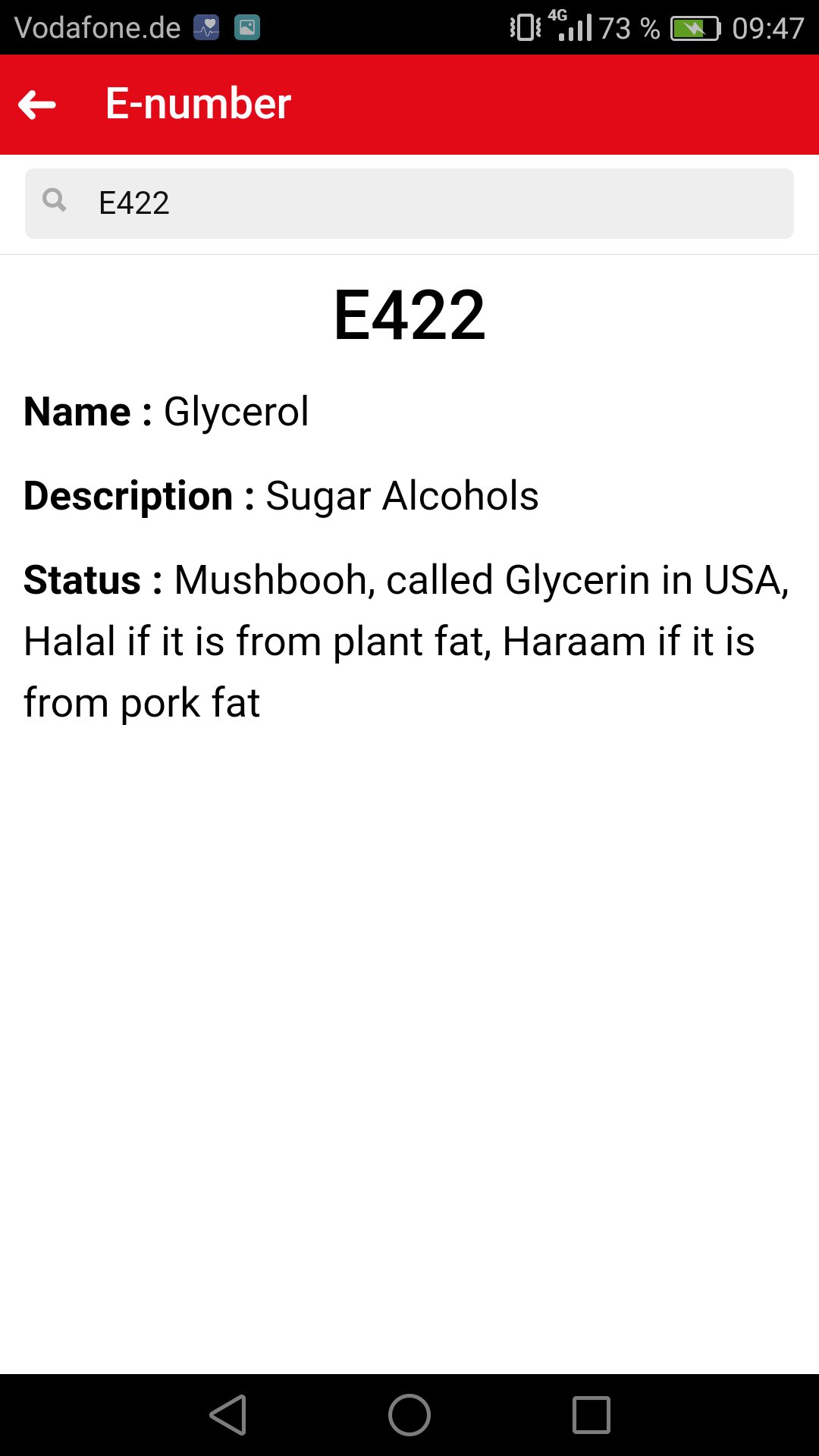 The app e number check offers a E-Numbers Listing of the halal and the haram food additive. You have just to give the number e in the search feld, click on it and read the information about the given e number and you can check if it is haram or halal food additive. The muslim food has to respect the halal symbol.