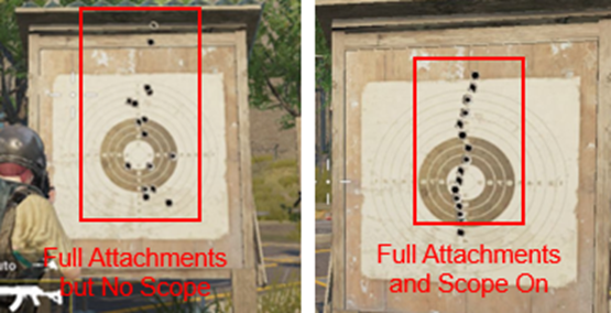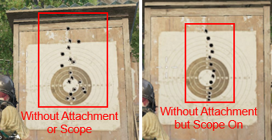 After equipping attachments like the Muzzle Compensator or Vertical Foregrip, the horizontal recoil and vertical recoil were significantly reduced, but the vertical recoil is still somewhat large, and need better recoil control skills.