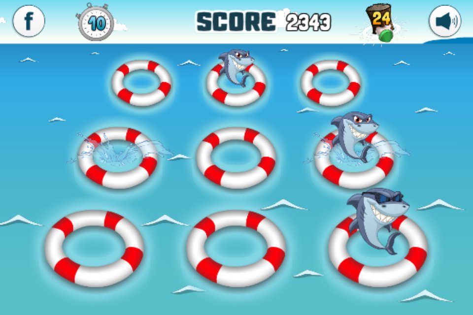 Hungre Sharks is an awsome bright game to check your reaction. You have a chance to compete with your friends, improve your skills and just have fun. Watch out: the less time is on the timer, the more difficult is the game. Additional seconds will appear as a bonus in random; do your best to collect them all - it will give you more chances to change your record.