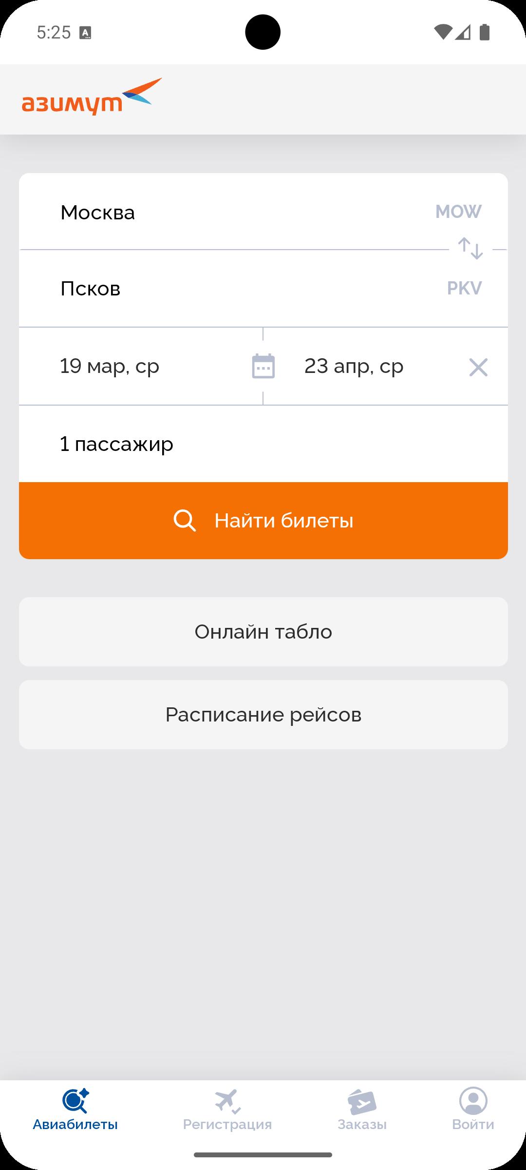 Первая версия нового мобильного приложения авиакомпании Азимут