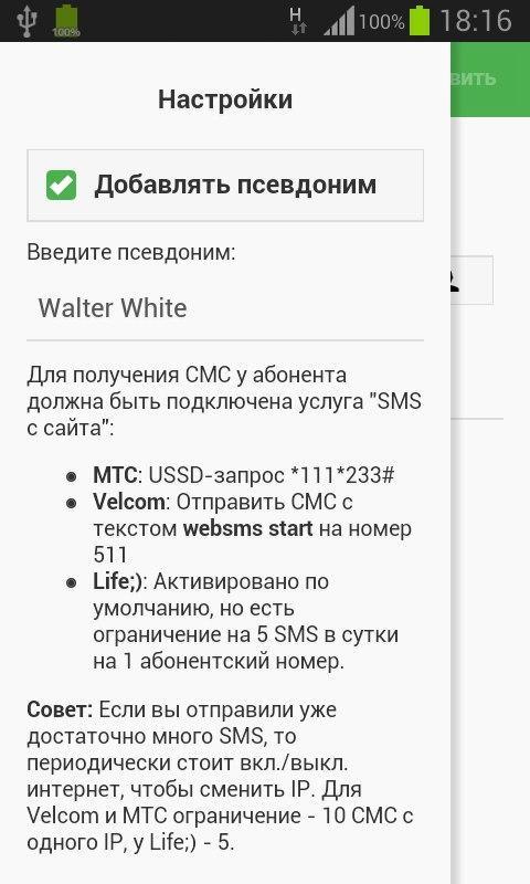 - Если вы отправили больше лимита в 10 СМС за один раз, просто выключите и включите интернет на смартфоне для смены IP-адреса и можно продолжать!