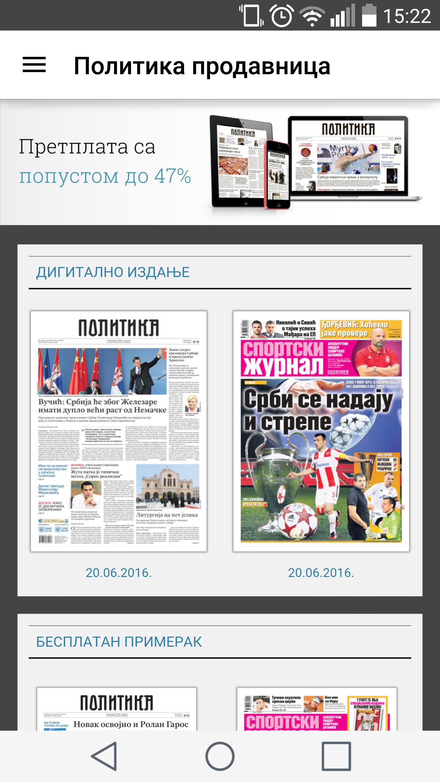 Melanjutkan tradisi salah satu media tertua dan paling dihormati di wilayah tersebut, menerbitkan dua surat kabar harian "Politika" dan "Olahraga Journal". Menggambar pada tradisi abad-lama di satu sisi dan teknologi modern di sisi lain, kami telah memutuskan untuk hadir Anda Privasi Seluler aplikasi, di mana Anda dapat dengan mudah dan nyaman memantau jumlah produk berita outlet favorit Anda.