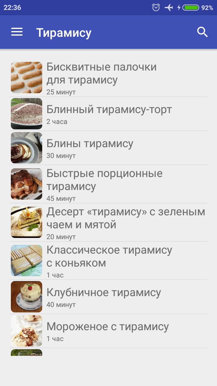 - Ориентировочное время приготовления блюда с картинками;