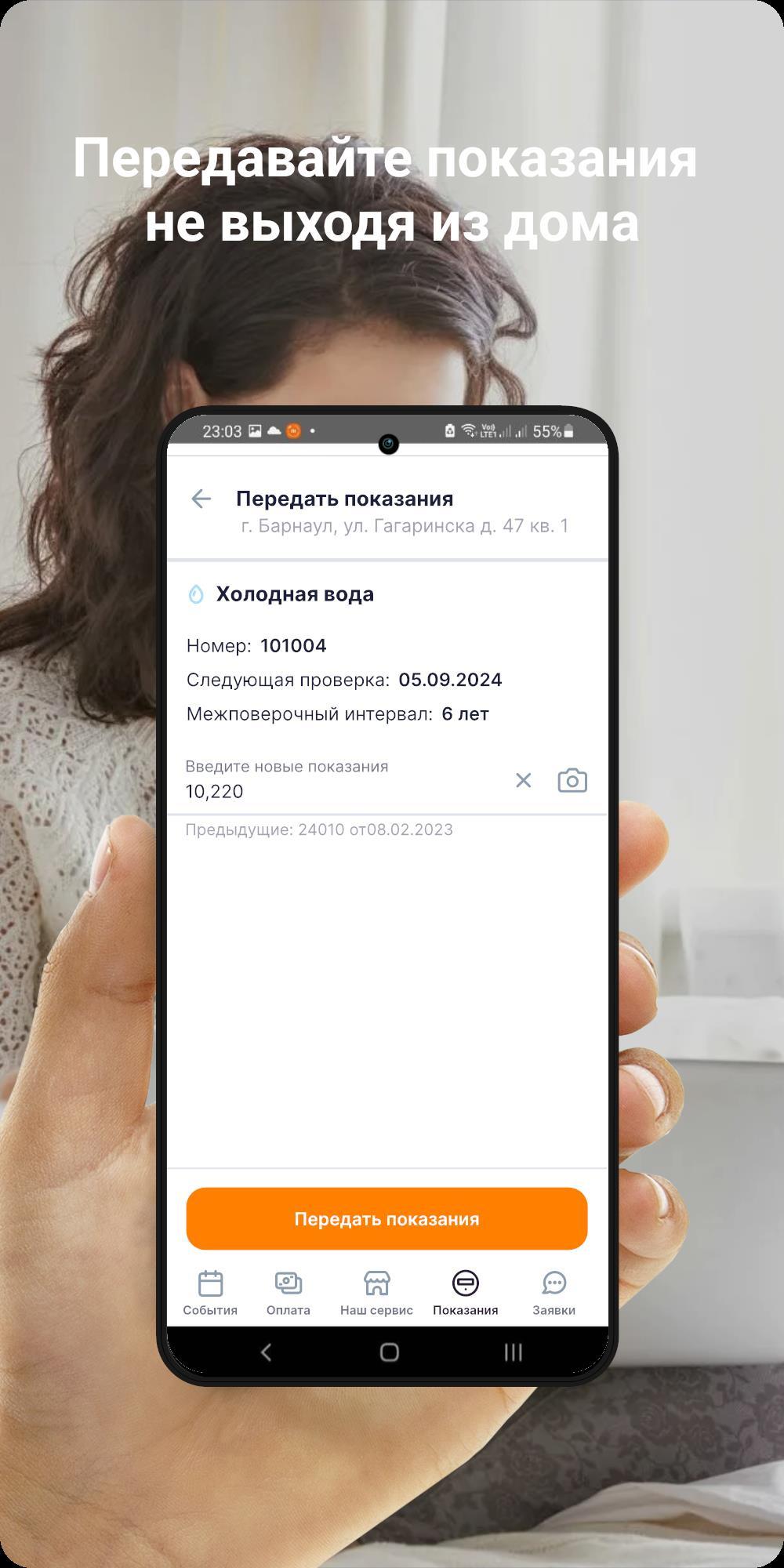 Cukup masukkan pembacaan meter saat ini ke ponsel Anda. Dan semua informasi akan otomatis masuk ke UK, HOA