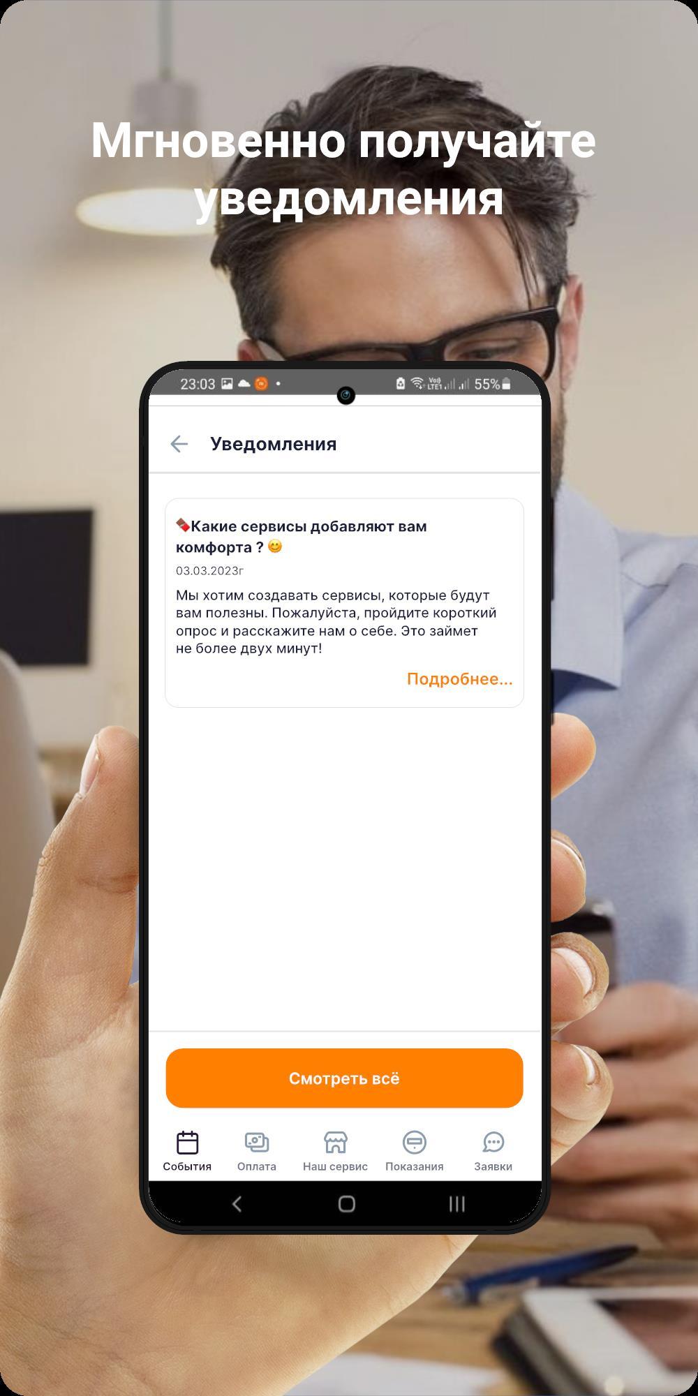 Manajemen perumahan dan layanan komunal yang efektif dari ponsel cerdas untuk pelanggan Perusahaan Manajemen DEZ Begovaya