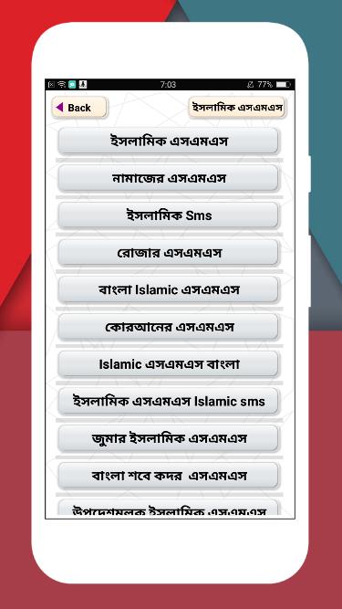 বাংলা Islamic এসএমএস কোরআনের এসএমএস Islamic এসএমএস বাংলা ইসলামিক এসএমএস Islamic sms বাংলা শবে কদর এসএমএস জুমার ইসলামিক এসএমএস উপদেশমূলক ইসলামিক এসএমএস দিয়ে অ্যাপ টি তৈরি করা হয়েছে।