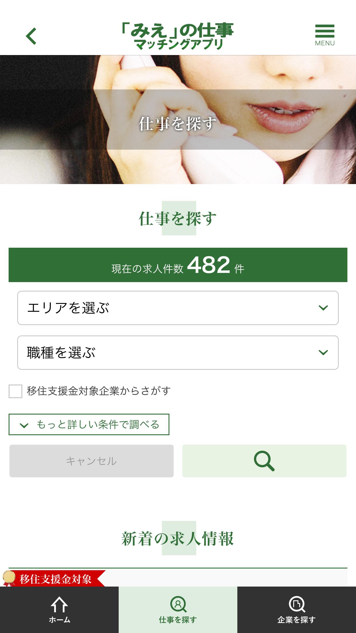 三重県内の求人に関する情報を掲載し、三重県で就業する際の求人検索を支援します。希望する求人情報の条件を登録しておくことで、該当する求人が登録されるとプッシュ通知が届きます