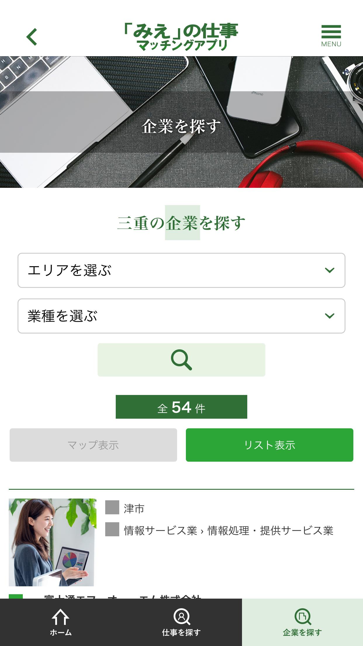 スマートフォンやタブレット端末などで利用できる「みえ」の仕事マッチングアプリです。