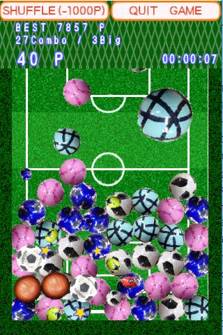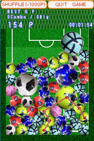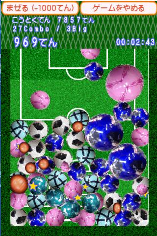 説明要らず簡単操作 となり合うサッカーボールを3つ以上つなげて消すだけ 難しい要素なしで単純にヒマをつぶすのに最適 プチプチをつぶすみたいに思わずくせになる