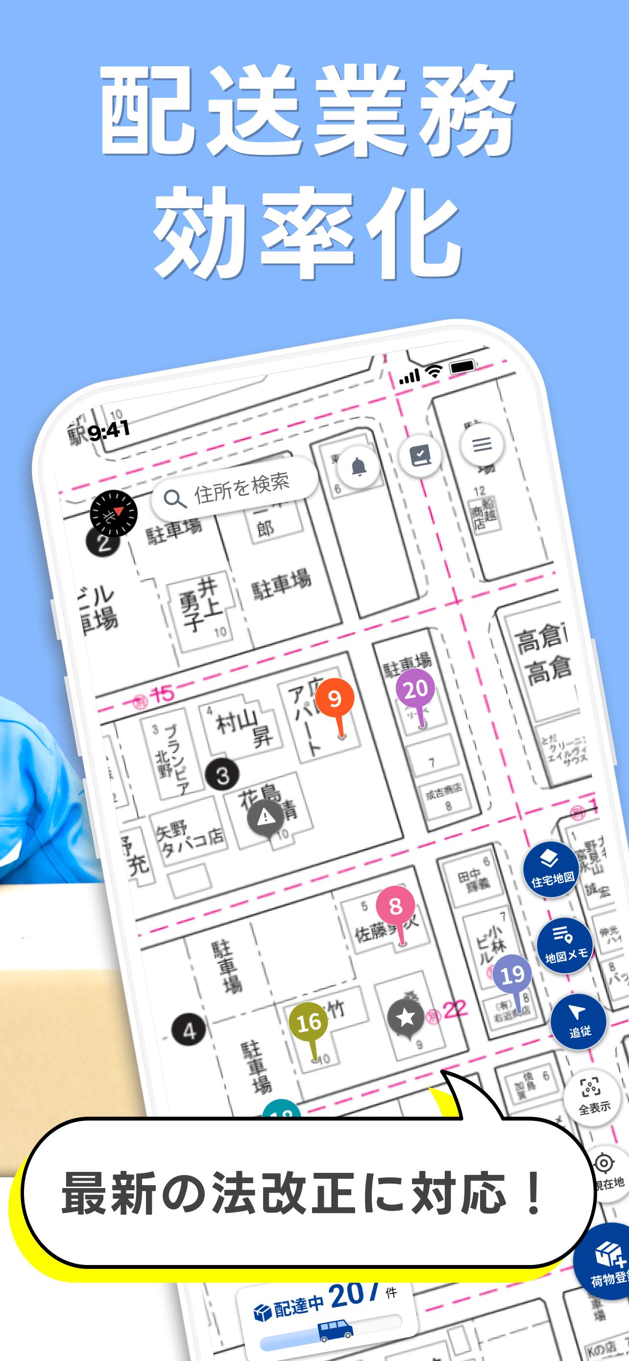 Aplikasi pengiriman yang dilengkapi dengan peta tempat tinggal Zenrin. Dari mencari pekerjaan pengiriman hingga meningkatkan efisiensi pengiriman! Kami akan menyelesaikan semua masalah staf pengiriman!