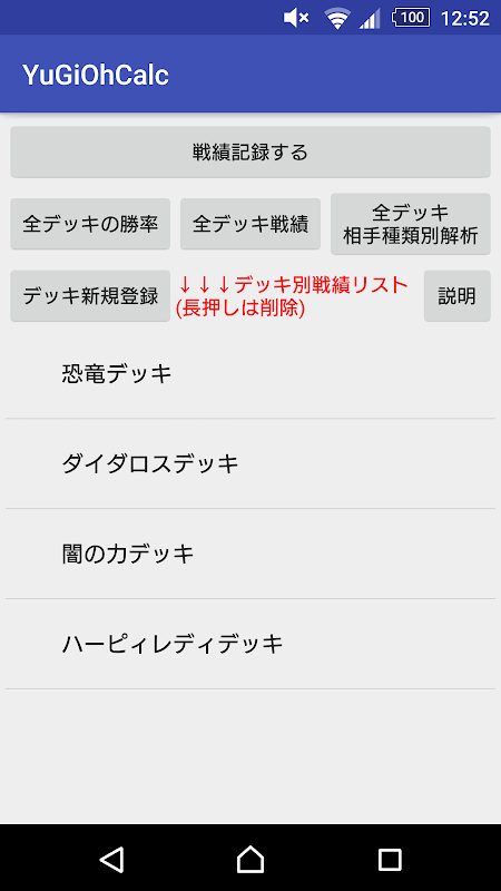 デッキ全体や、デッキ別に記録できたり、勝率等がすぐわかるようにしました。