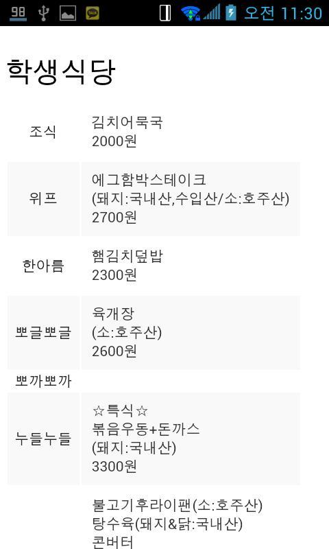 켜자마자 바로 오늘의 학식 메뉴를 볼 수 있습니다!!