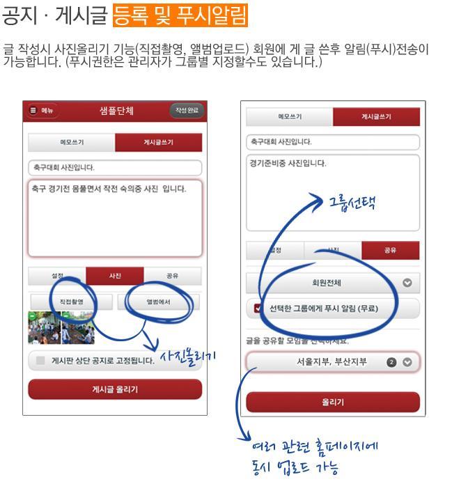 5. 스마트폰어플에서 촬영한 사진과 글을 등록하면 홈페이지에도 동시 등록됩니다.