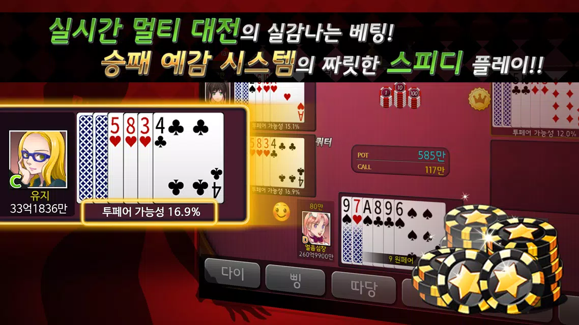 ▶ 친절한 포커 : 자동 포커 족보 표시 기능, 승률 예측 도박 기능