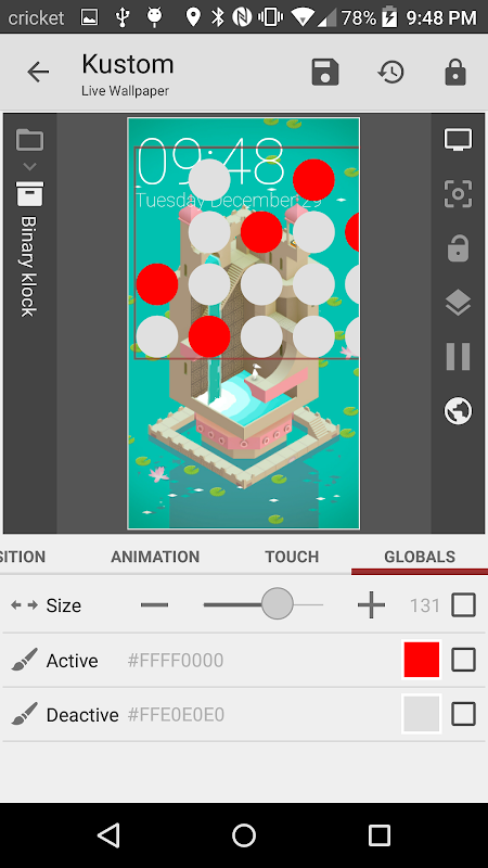 Everyone loves binary clocks, and everyone loves customizability... or should I say kustomizability? Binary Klock is a KLWP Komponent that adds a binary clock.