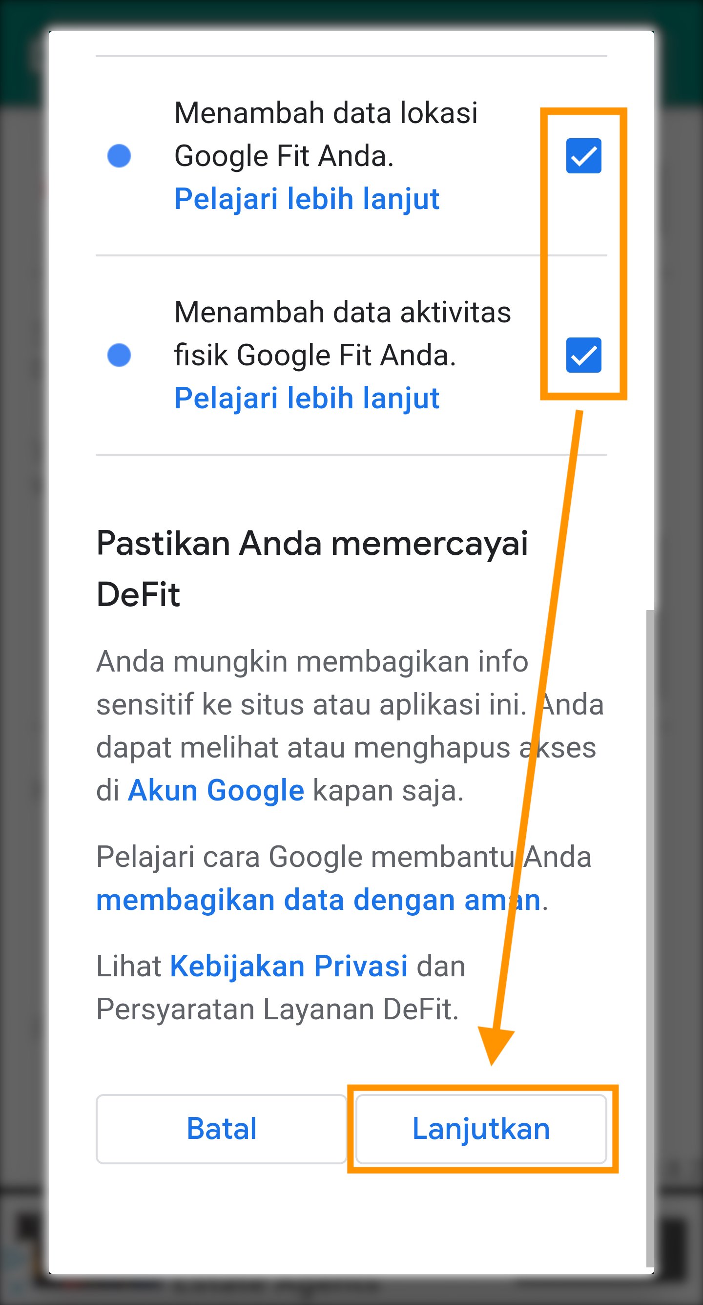 - DeFit adalah aplikasi pihak ketiga yang menggunakan Google Fit API dan basis datanya. DeFit tidak berafiliasi dengan perusahaan Google.