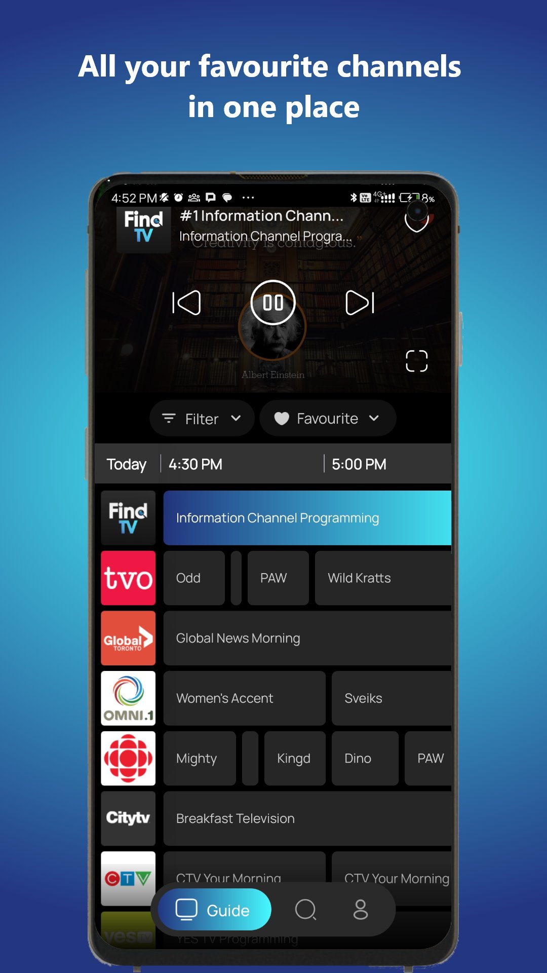 FindTV menyediakan cara yang terjangkau bagi masyarakat untuk menikmati konten dengan beragam saluran TV langsung yang tersebar di program berita, hiburan, dan budaya dalam berbagai bahasa.