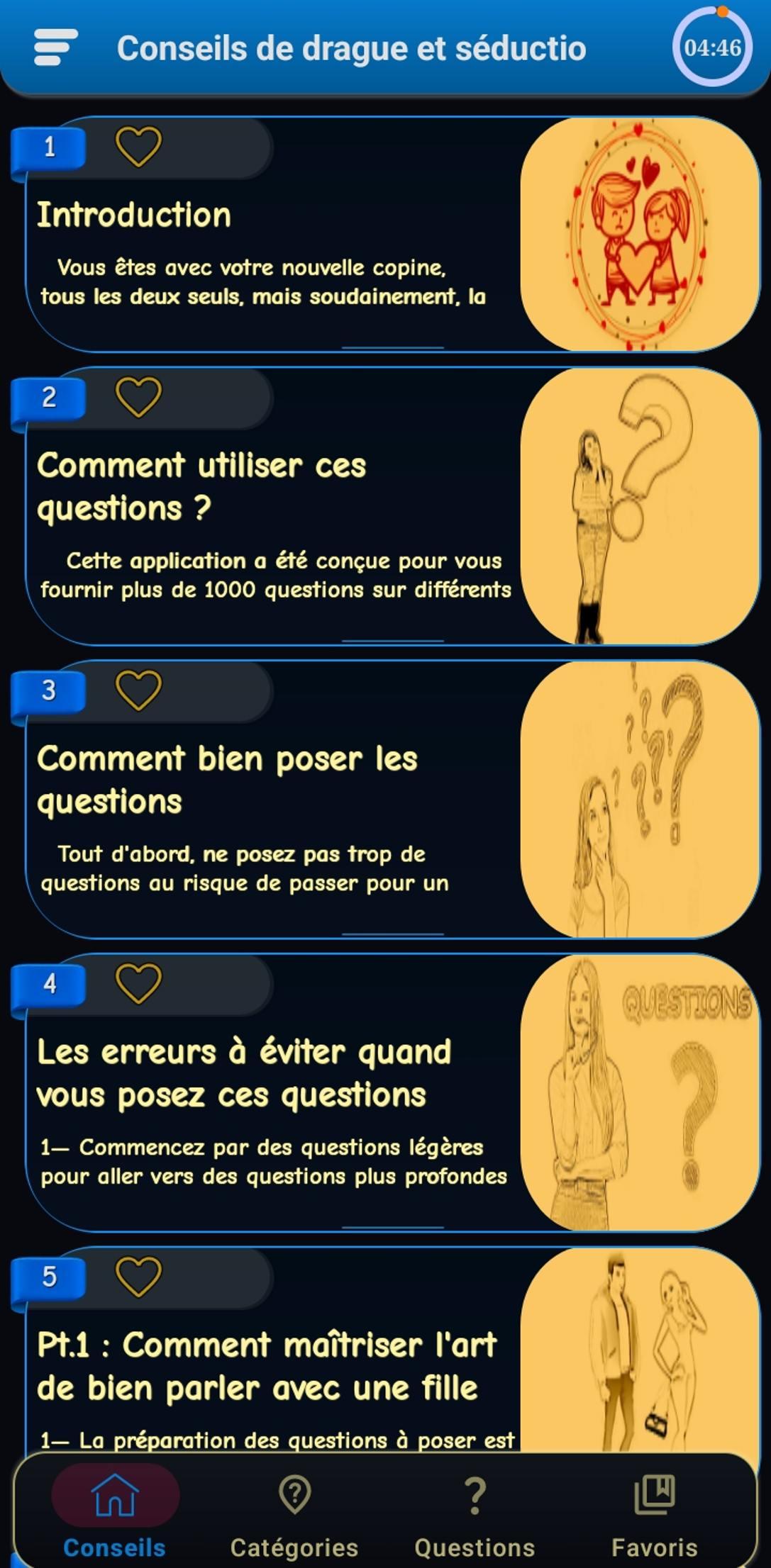 Jika Anda sedang mencari topik pembicaraan atau pertanyaan untuk ditanyakan kepada seorang gadis agar dia jatuh cinta kepada Anda. Jadi aplikasi ini akan memungkinkan Anda mempelajari cara menjemput seorang gadis secara langsung atau membuat seorang wanita jatuh cinta kepada Anda.