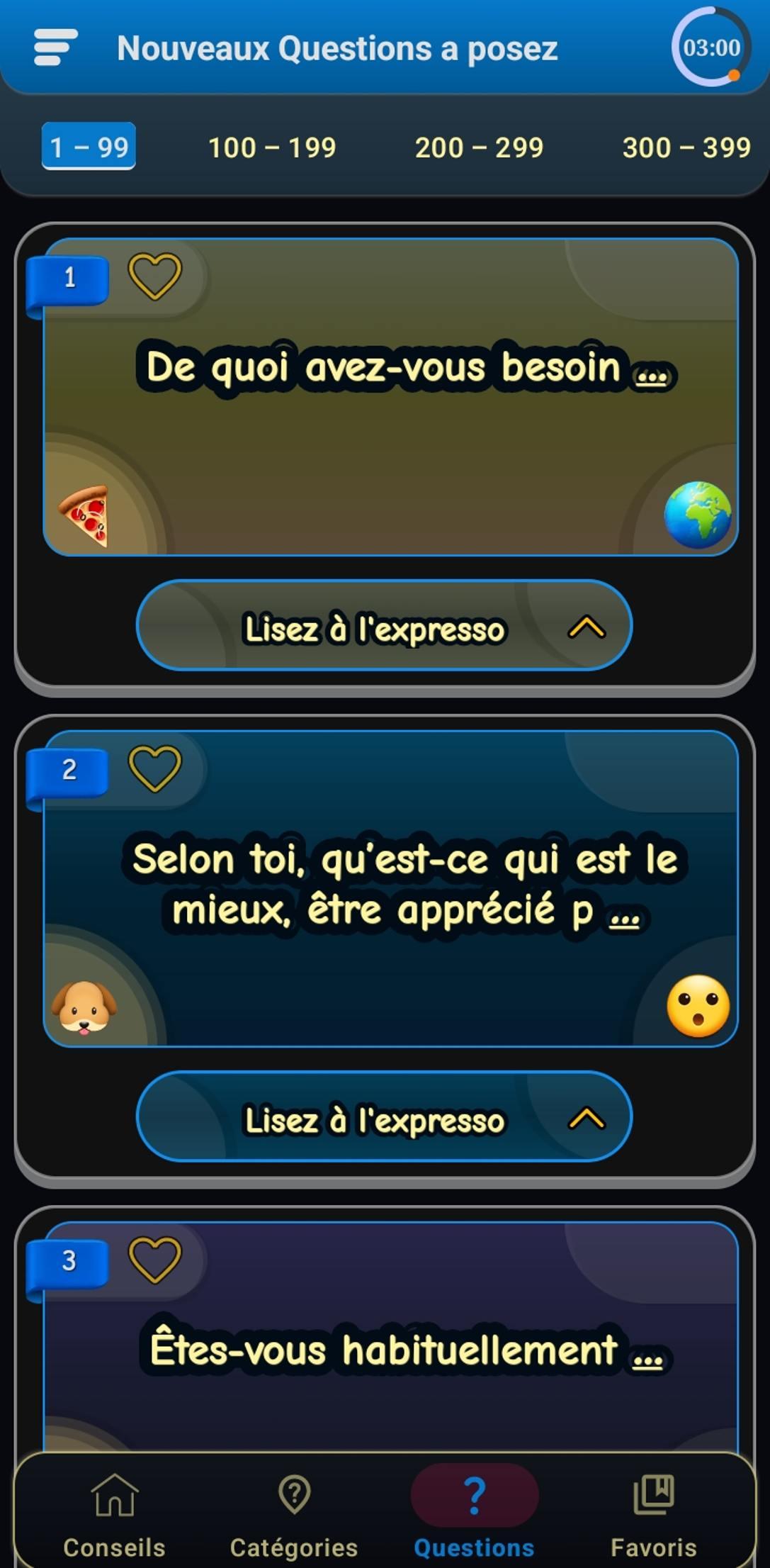 * Nous avons ajouter plus de 100 questions intime à poser à son copain ou à son crush.