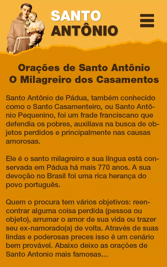 Dalam aplikasi ini Anda akan menemukan semua informasi dari Saint Anthony, santo mak comblang.