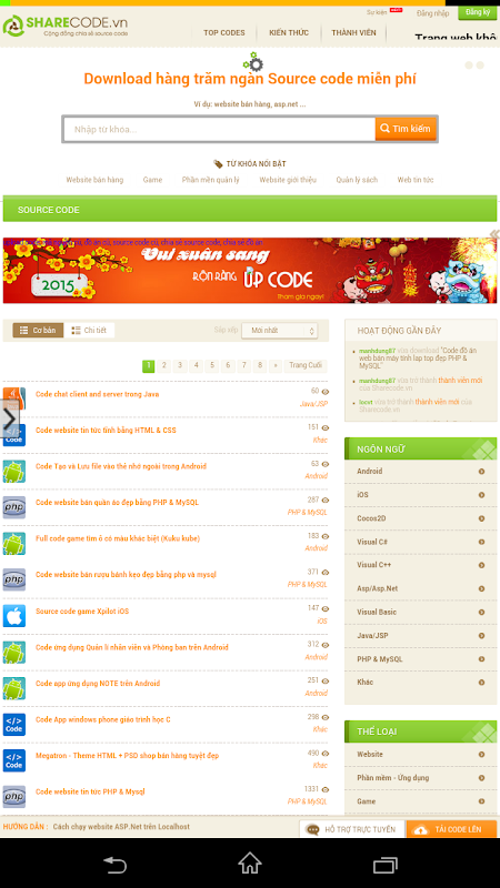 Mã nguồn với việc cung cấp các đoạn mã và giải quyết các vấn đề mã hóa cho các lập trình viên hoặc bất cứ ai quan tâm đến phát triển ứng dụng