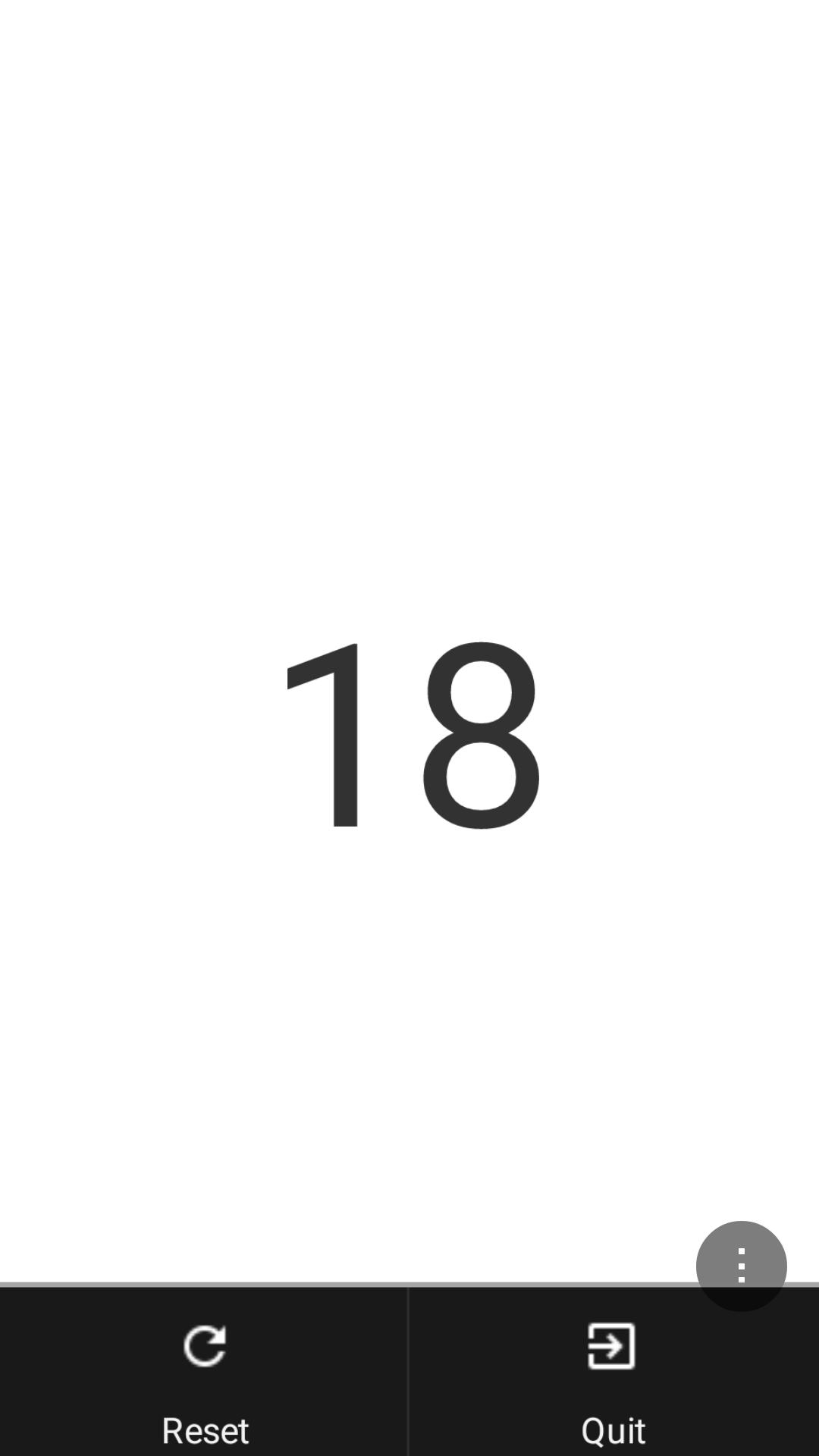 This is a really simple counter app - touch any part of the screen to increment the counter. Press the menu icon in the lower right corner to reset the counter or quit the app.