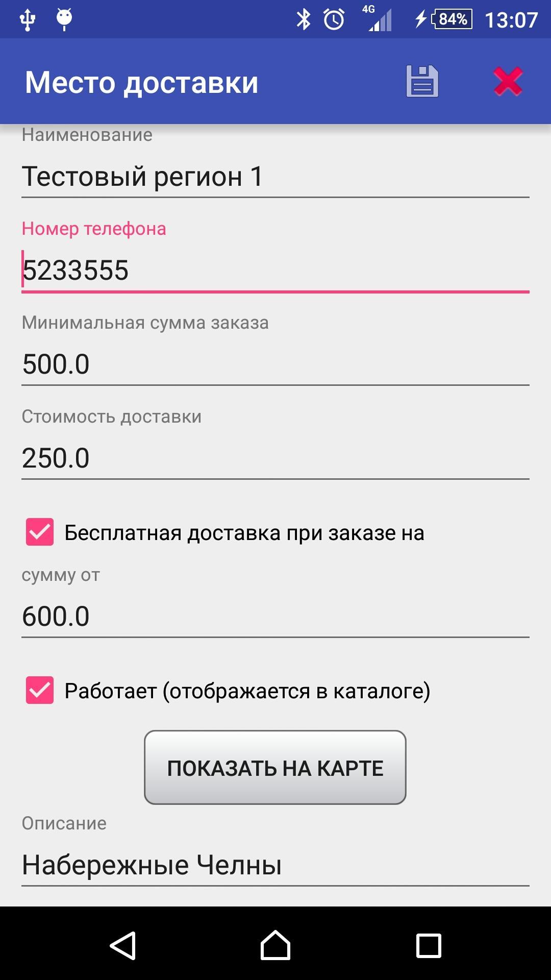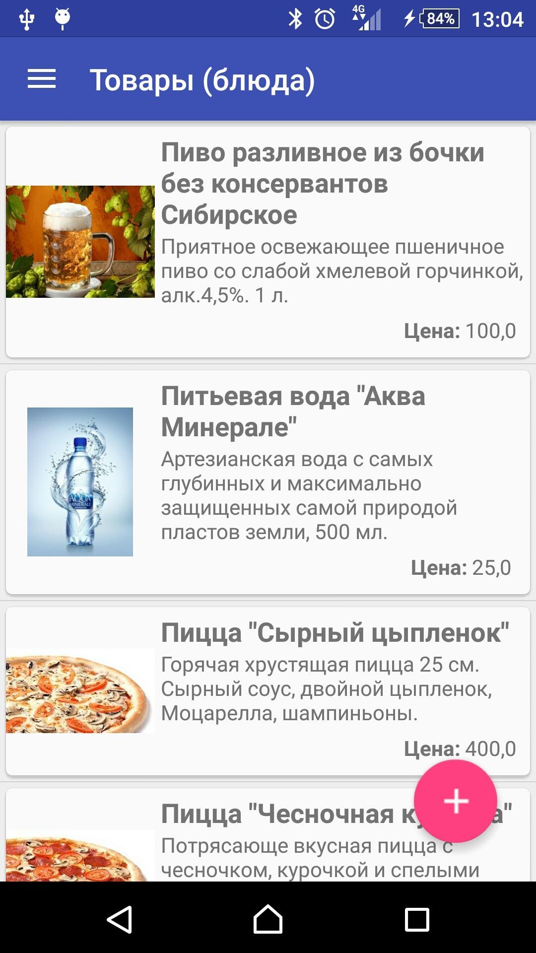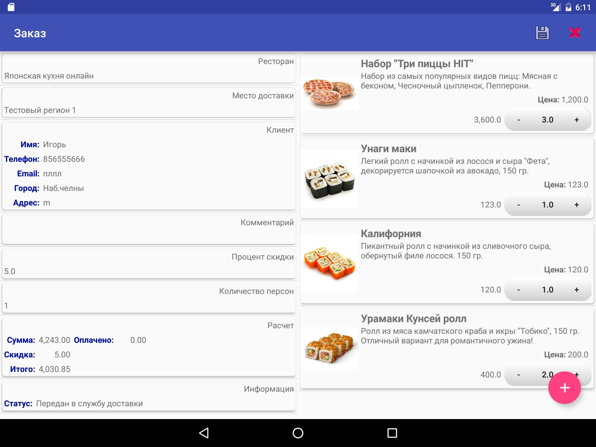 Приложение позволяет работать с заказами еды на мобильном телефоне или планшете.