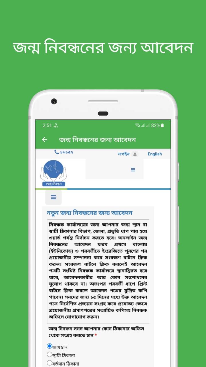 এই অ্যাপটি আপনাকে আপনার জন্ম নিবন্ধন যাচাইকরণ, জন্ম নিবন্ধনের জন্য আবেদন এবং সকল ধরনের সমস্যা যেমন নামের ভুল,জন্ম তারিখে ভুল, মা বাবার নামে ভুল এই সব সমস্যা সংশোধন সংক্রান্ত তথ্য জানতে সাহায্য করবে এই অ্যাপটি। এবং তার জন্য যাবতীও ওয়েবসাইট এর লিংক ও এখানে সংযোজন করা হয়েছে।