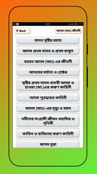 আদম ও হাওয়া (আ.)এর করুণ জীবন কাহিনী, মর্যাদা, শ্রেষ্ঠত্ব, পুত্রদ্বয়ের কাহিনী ও মানব সৃষ্টির রহস্য দিয়ে অ্যাপটি সাজানো হয়েছে।আদম আব্রাহামীয় ধর্ম এবং বিভিন্ন পৌরাণিক কাহিনীতে উল্লেখিত একজন ব্যক্তি। ইহুদি, খ্রিস্টান ও ইসলাম ধর্মের অনুসারীদের বিশ্বাস অনুসারে আদম ছিলেন প্রথম সৃষ্ট মানব। ইসলাম ধর্মের বর্ণনা মতে আদম আল্লাহ প্রেরিত রাসুল বা বাণীবাহক এবং তাঁকে এই ধর্মে হযরত আদম (আ:)হিসেবে উল্লেখ করা হয়। আদমের স্ত্রী ছিলেন হাওয়া (আ:)।