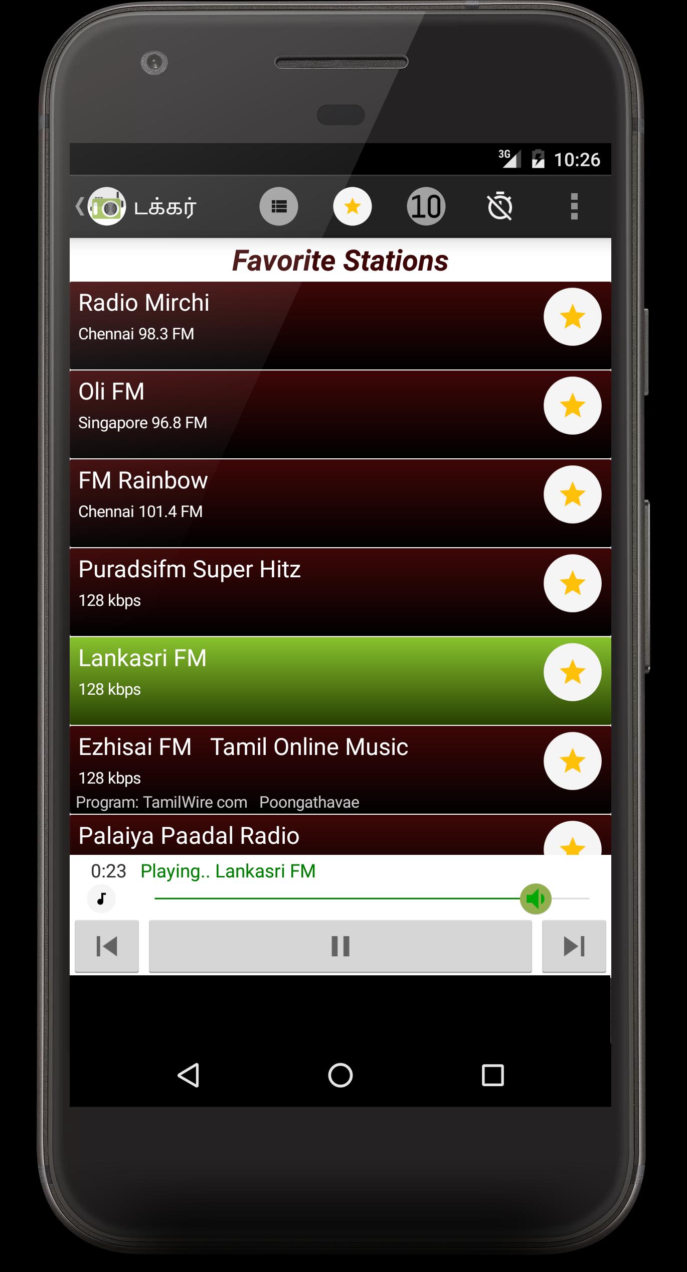Use Takkar Radio to listen to your favorite Tamil radio stations anytime anywhere in the world. Takkar Tamil online FM radio app has both local FM stations and online stations making up to 200 radio stations with clear song quality. Takkar Tamil FM radio is very small and simple, yet user friendly, with rich features to make your listening experience wonderful. Stations include but not limited to various kinds of music, live talk shows including top artists radios, new and old songs radios, melodies, news and devotional songs.