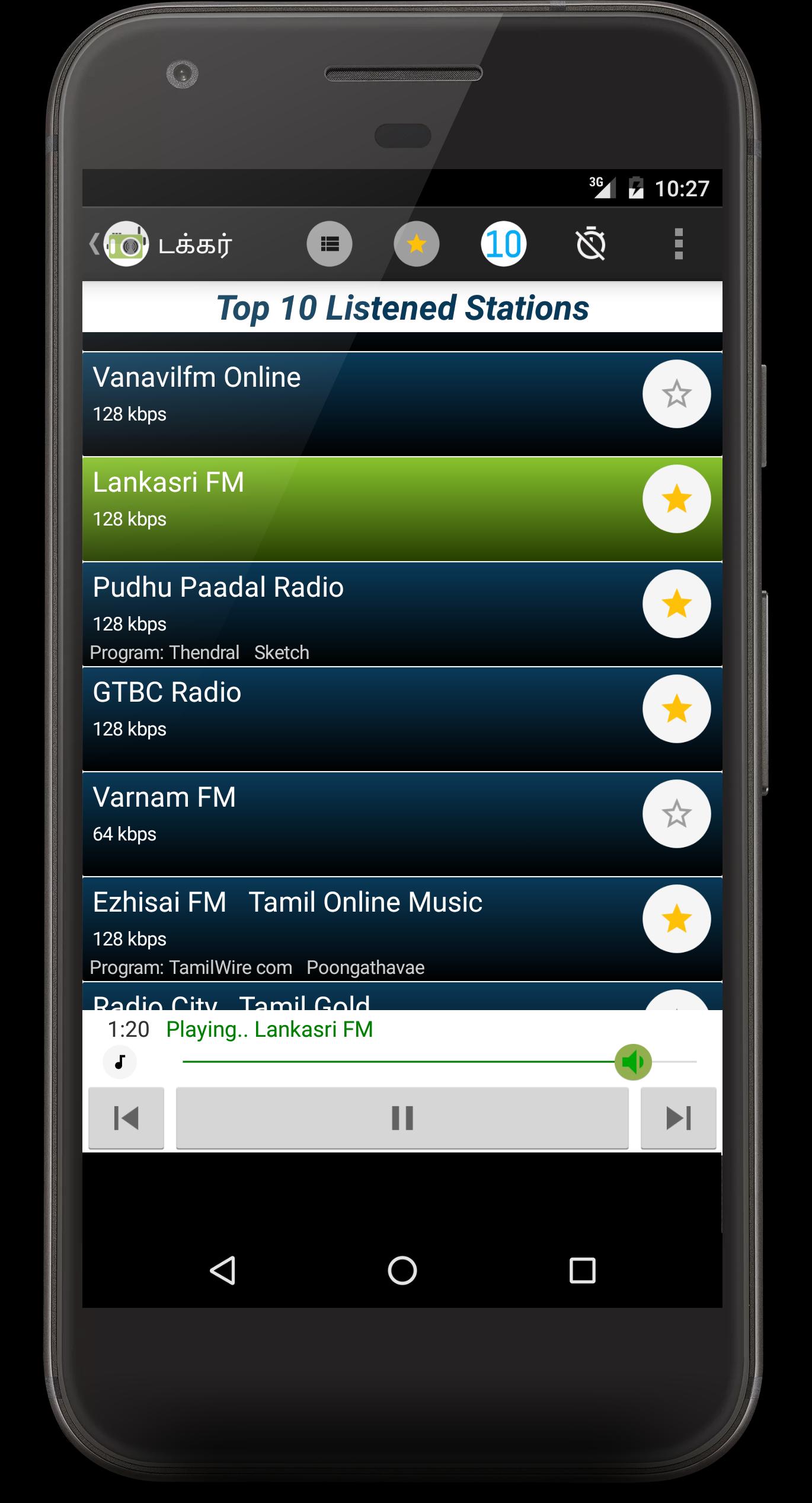 Note: Please email us if any stations we linked is unauthorized or violating copyrights. This app has been made with love for true fans of Tamil music. The app offers biggest collection of best Tamil songs.