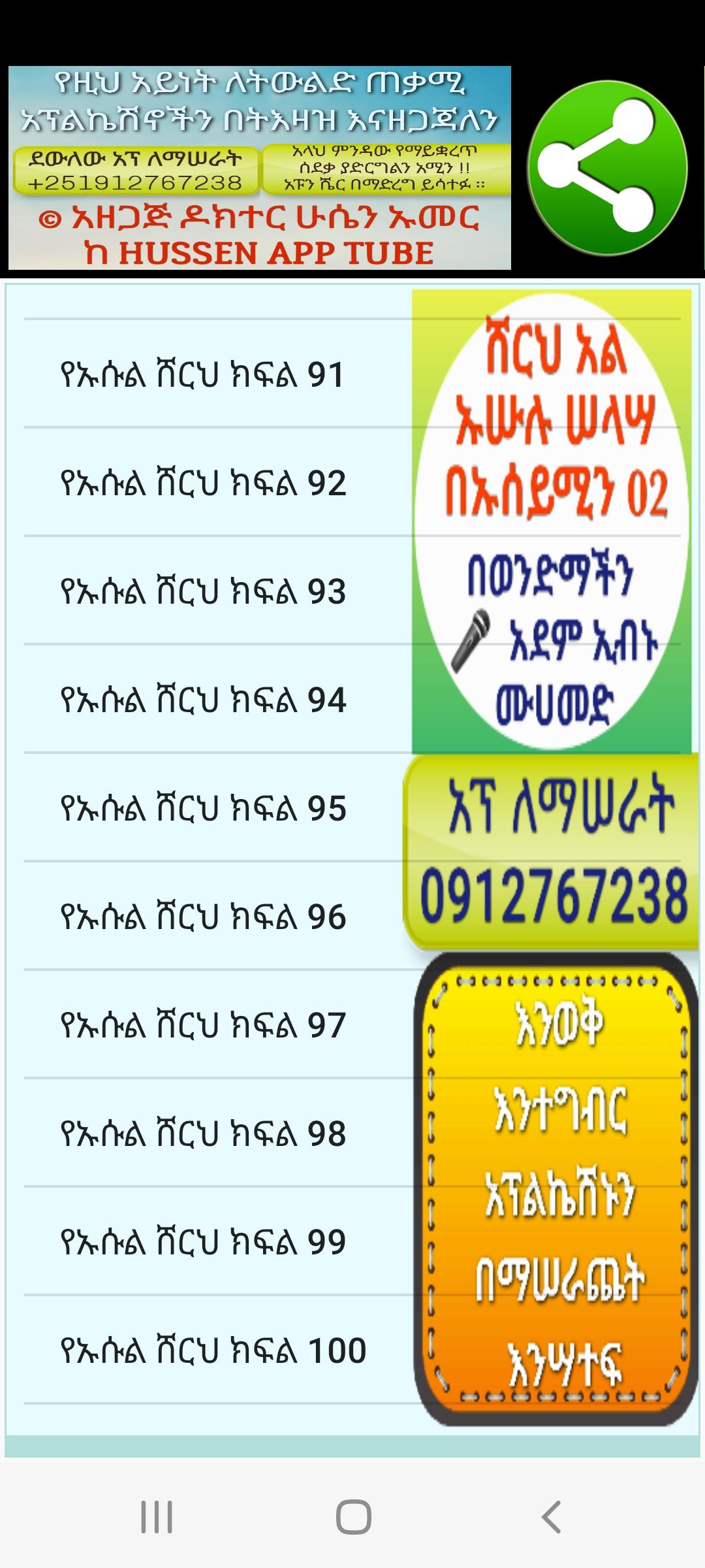አፕልኬሽኑን ከወደዳችሁት 5 ኮከቦችን (★★★★★) በመስጠት እንዲሁም ለወዳጅ ዘመድዎ በማጋራት ድጋፋችሁን ግለጹልን ፣ ጀዛኩሙሏሁ ኸይር ። እንደዚሁም በተለያዩ የሱና ኡስታዞች ተቀርተው ያለቁ ኪታቦችን ፣ ተፍሲሮችን ፣ እና ሙሓዶራዎችን በአፕልኬሽን መልክ ማሠራት ፣ ፕለይስቶር ላይ ማስጫን ንያው ፍላጎቱ ካላችሁ በዚህ ስልክ ቁጥር 251912768238 ያናግሩን ።