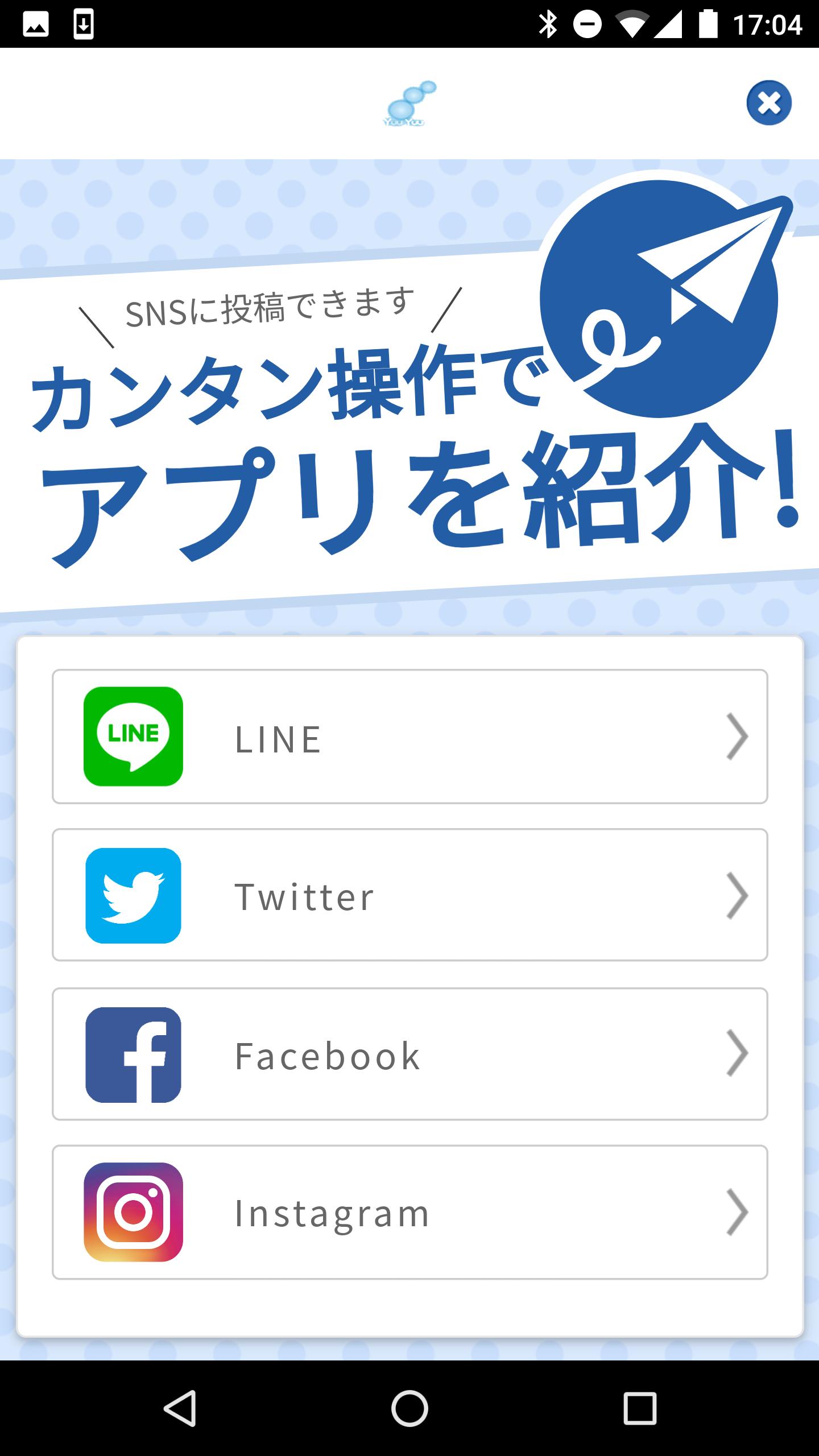 ゆうゆう整骨のアプリをSNSを通じてお友達に紹介する事ができます。