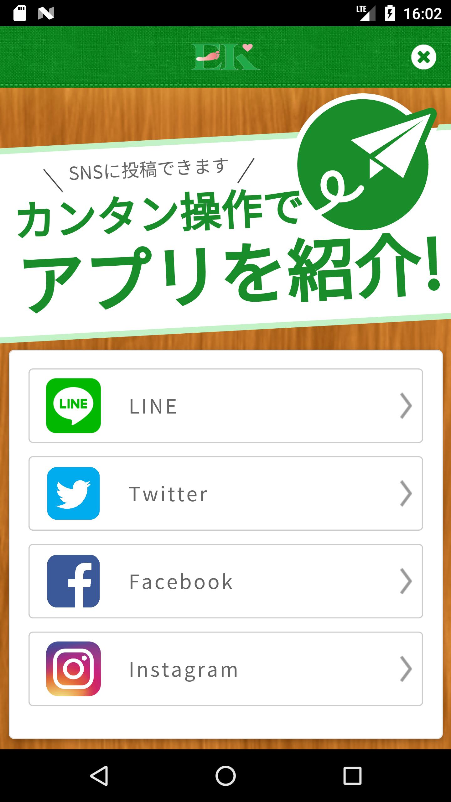 エミリーKのアプリをSNSを通じてお友達に紹介する事ができます。