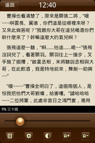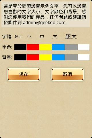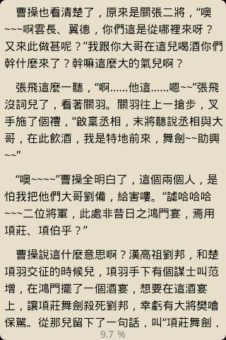 史上最全的《三國演義》版本合集,包含 1.三國演義原著 2.三國演義白話文版 3.三國演義評書袁闊成版 4.三國演義英文版(Romance of Three Kingdoms)5.三國志原著。後續版本還將不斷增加其他內容,敬請期待。純觸屏翻頁,可自己定義字體顏色、字體大小、背景顏色等,選擇最適合自己的閱讀模式。