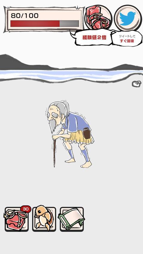 TOPに戻り、玉手箱ボタンを押すと経験値を手に入れられます。