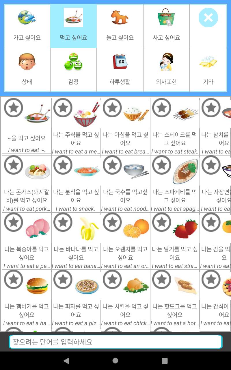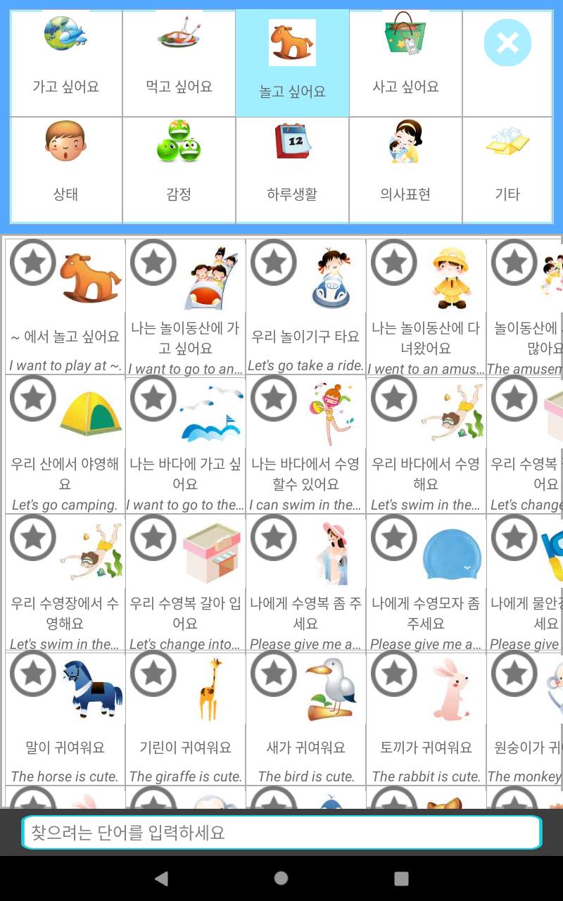 일상에서 자주 사용하는 단어를 카테고리별로 나누어 몇번의 아이콘 터치만으로 자연스럽게 회화를 익힐 수 있습니다.