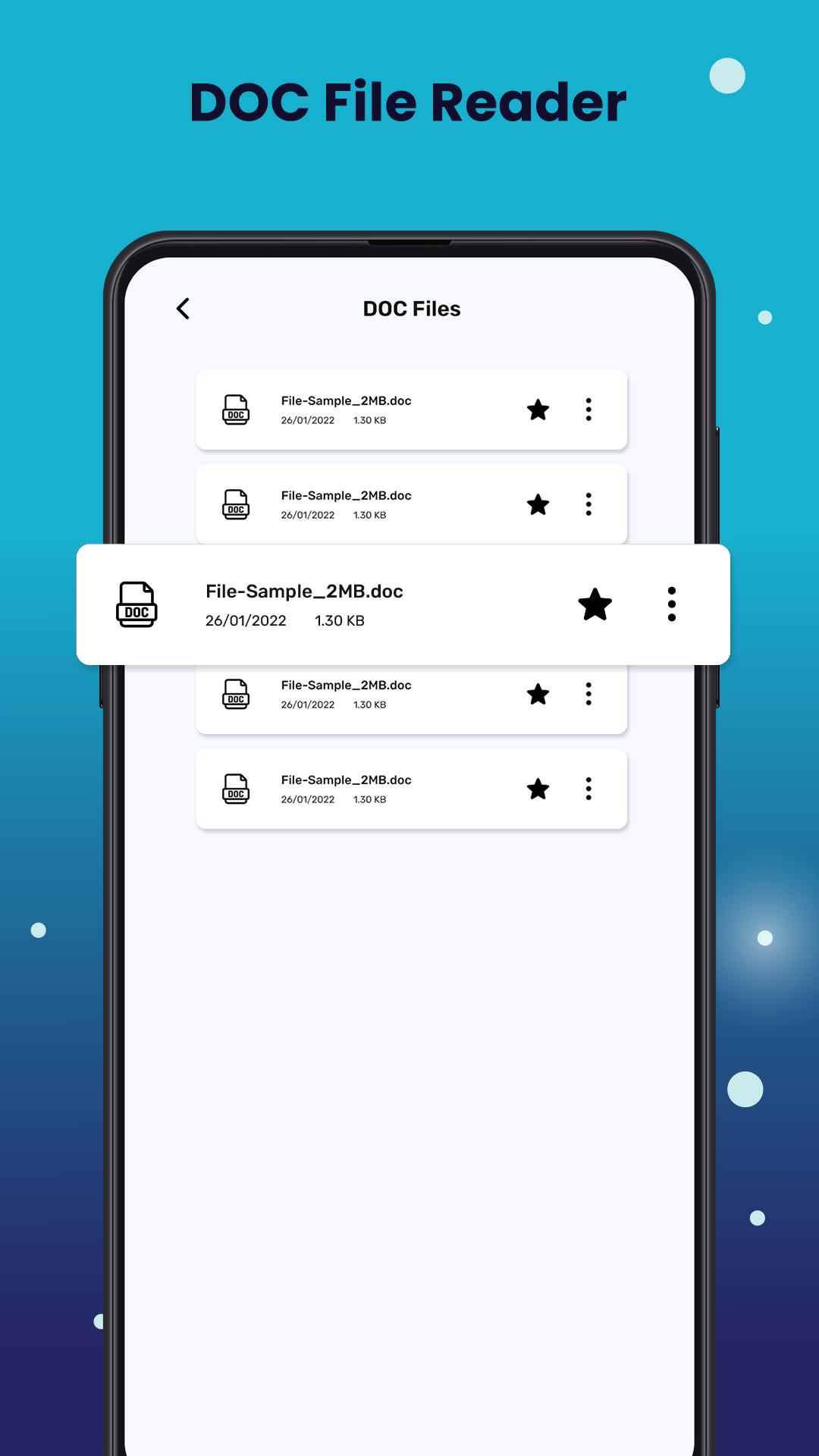 सभी दस्तावेज़ रीडर और व्यूअर आज़माएं! यह ऑल-इन-वन फ़ाइल व्यूअर सभी Office फ़ाइलों के साथ पूरी तरह से संगत है, जिससे आपको PDF, DOC, DOCX, XLS, XLXS, PPT, TXT, आदि जैसे सभी स्वरूपों में फ़ाइलों को आसानी से संसाधित करने में मदद मिलती है। यह स्वचालित रूप से फ़ाइलों को स्कैन कर सकता है अपना फ़ोन, उन्हें एक ही स्थान पर संबंधित फ़ोल्डरों में व्यवस्थित करें ताकि आप उन्हें आसानी से खोज और देख सकें।
