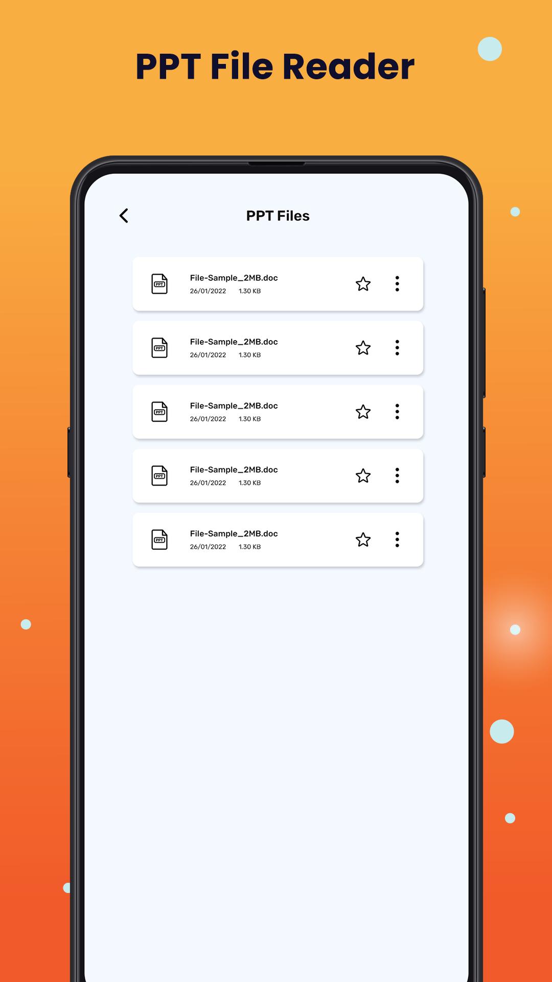 - उच्च संकल्प और तेज प्रदर्शन के साथ पीपीटी फाइलों, पीपीटीएक्स रीडर का समर्थन करें।